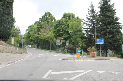 Ausgangspunkt ist der kleine Kreisverkehr bei Villa Pecille. Diesen von Villa Pecille kommend an der zweiten Ausfahrt verlassen.