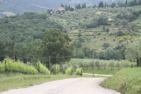 ... wenige Meter an den Weinstöcken von Le Fonti entlang, bis ...