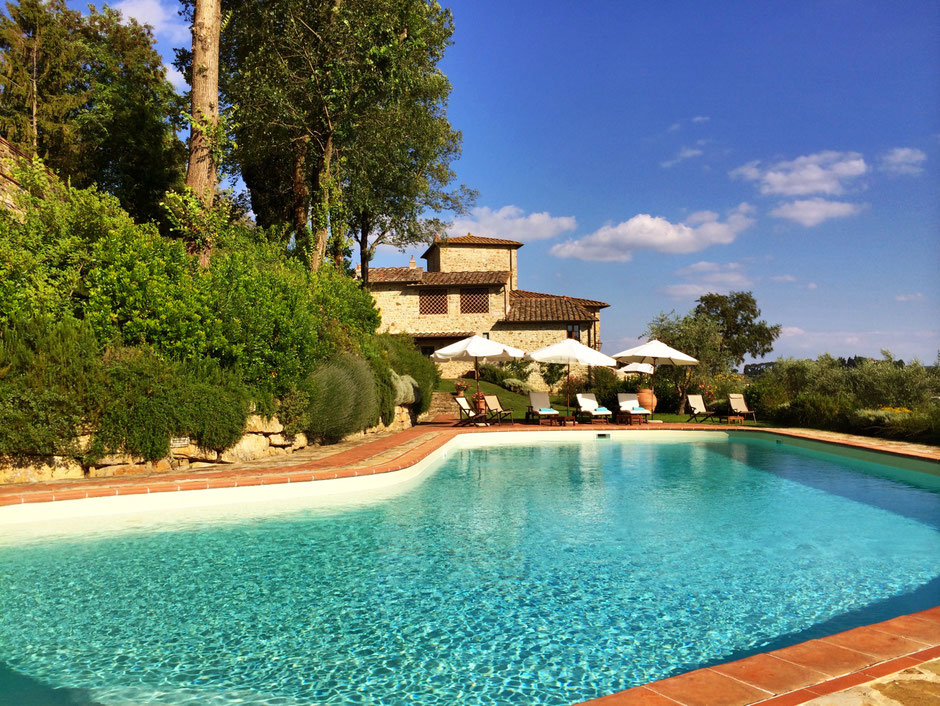 WILLKOMMEN in Villa Pecille. Hier am Parkplatz einfach das Auto abstellen und über den Pool nach oben gehen. Dort erwartet Euch eine kleine Erfrischung und alle weiteren Informationen.