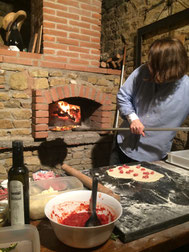 Unsere Freunde Vicky & Guido vom Weingut Le Fonti heizen für uns und unsere Gäste den legendären Pizzaofen an.