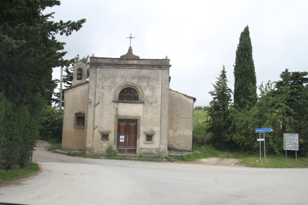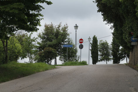 Leicht bergauf dem Straßenverlauf einfach folgen, bis man den Wegweiser nach "MERCATALE" sieht. Achtung, hier in wenigen Metern links abbiegen.